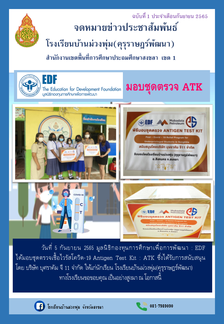 มูลนิธิกองทุนการศึกษาเพื่อการพัฒนา : EDF ได้มอบชุดตรวจเชื้อไวรัสโควิด-19