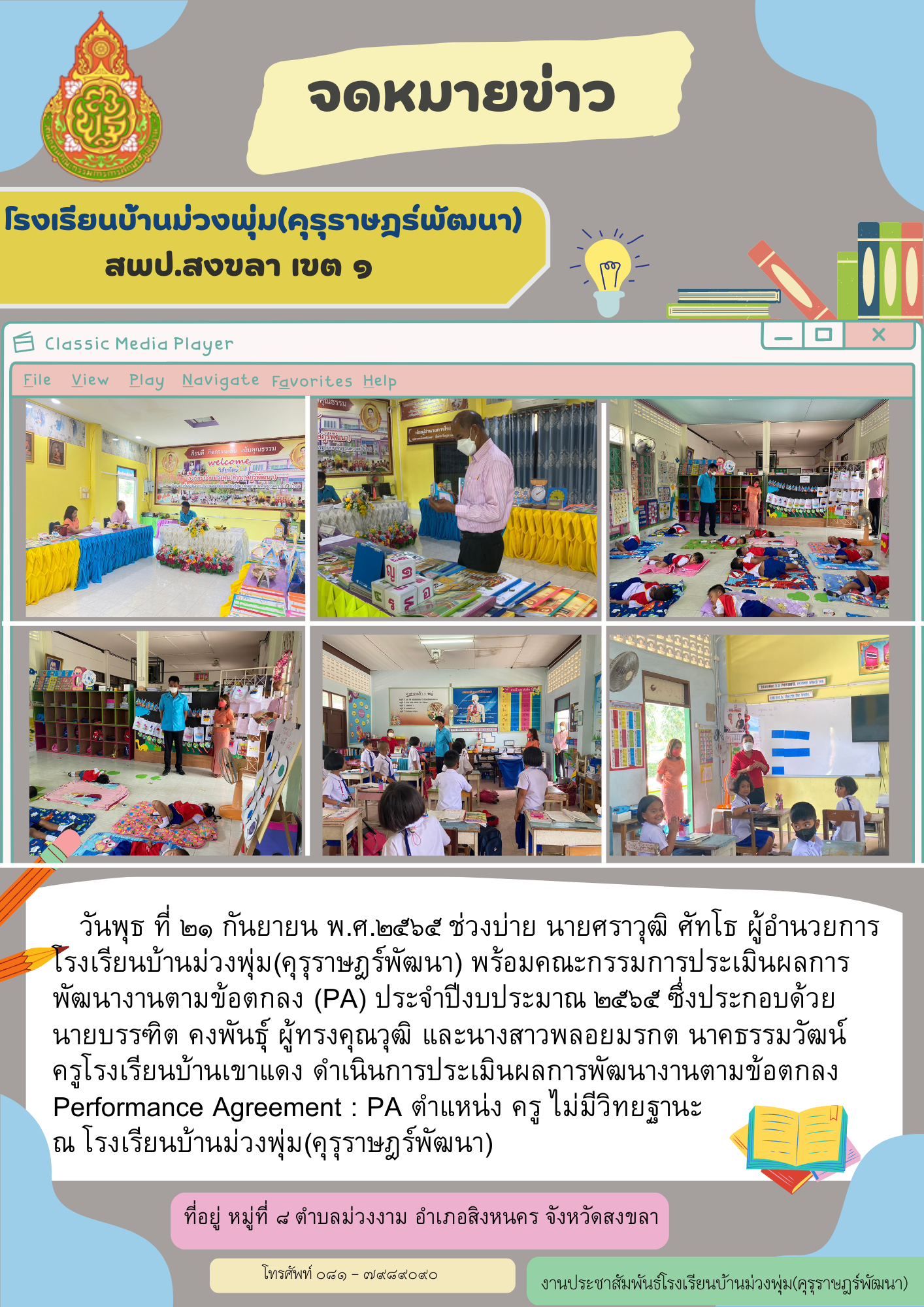 การประเมินผลการพัฒนางานตามข้อตกลง(PA) ตำแหน่ง ครู ไม่มีวิทยฐานะ